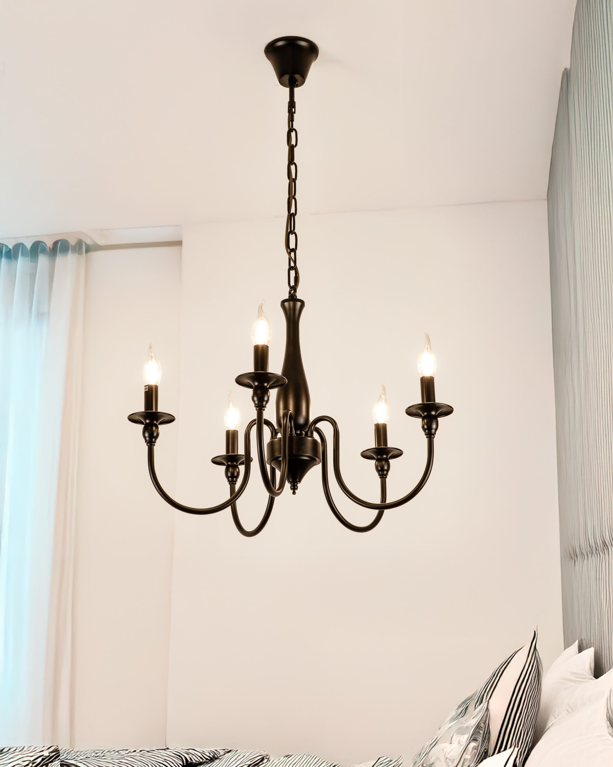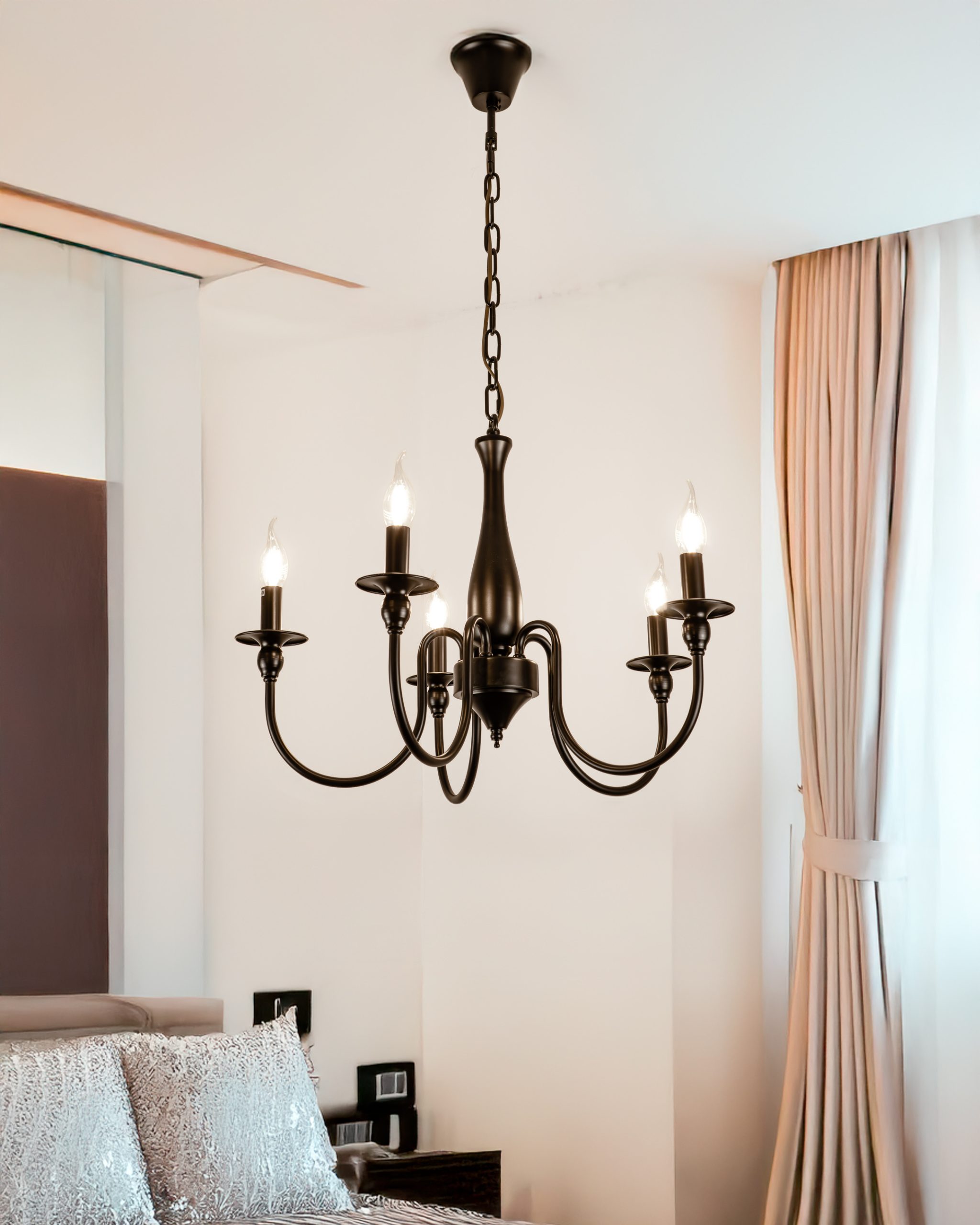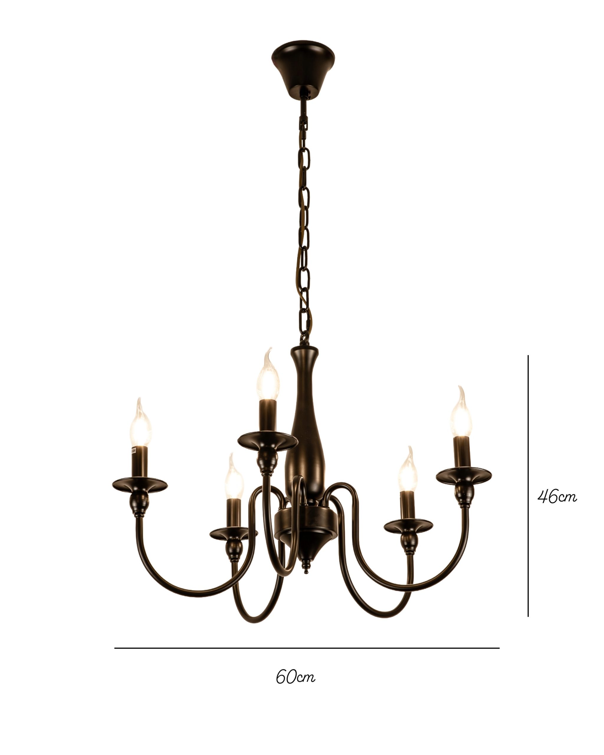 Elegantni luster klasične forme sa pet svjetlosnih tačaka, izrađen u crnoj završnoj obradi. Misantika unosi toplinu i karakter u prostor kroz vanvremenski dizajn.