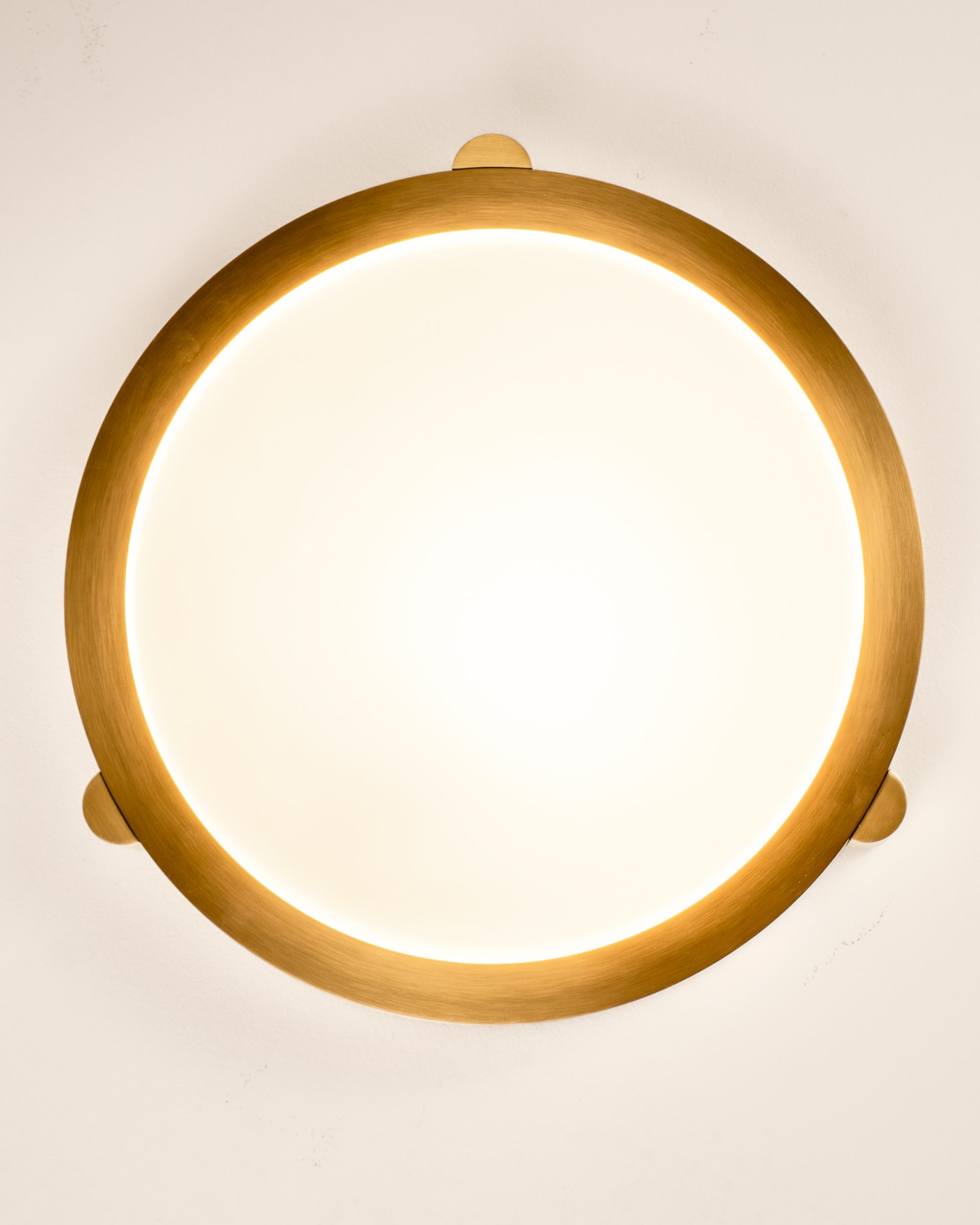 Topla završna obrada u mesingu daje modelu Osvald Brass profinjen, gotovo klasičan karakter, dok njegova jednostavna forma ostaje potpuno savremena. Svjetlo se ravnomjerno raspršuje kroz donji difuzor, stvarajući prijatnu atmosferu bez blještanja.