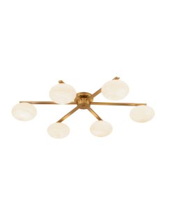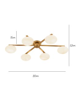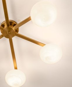 Plafonska lampa Bertina 6 osmišljena je kao elegantno rješenje za prostore u kojima je potreban suptilan, ali izražajan svjetlosni akcenat. Šest staklenih kugli, blago nepravilnog oblika, izrađene su sa finom teksturom koja se najljepše uočava uživo, gdje svjetlost dobija dubinu i karakter.