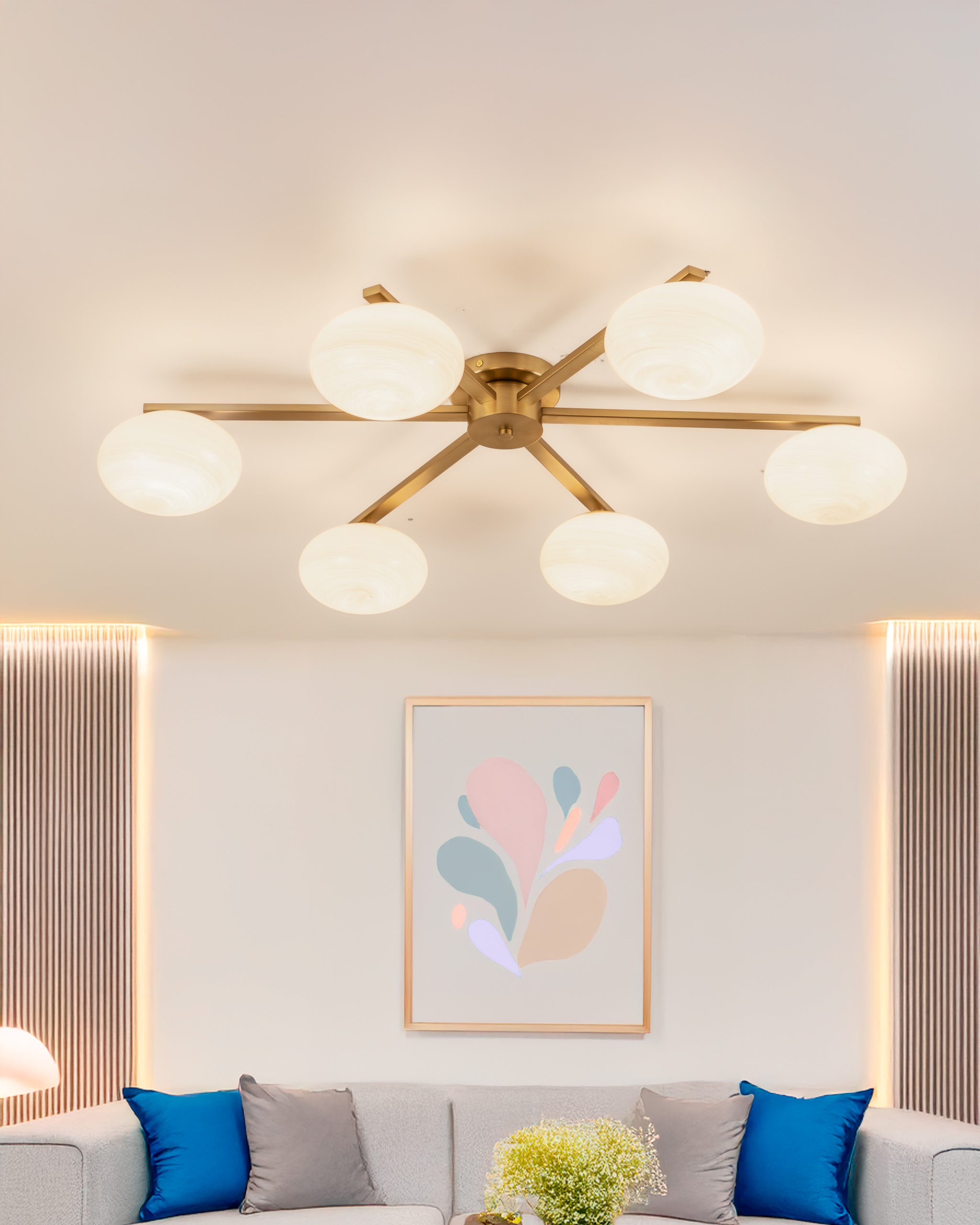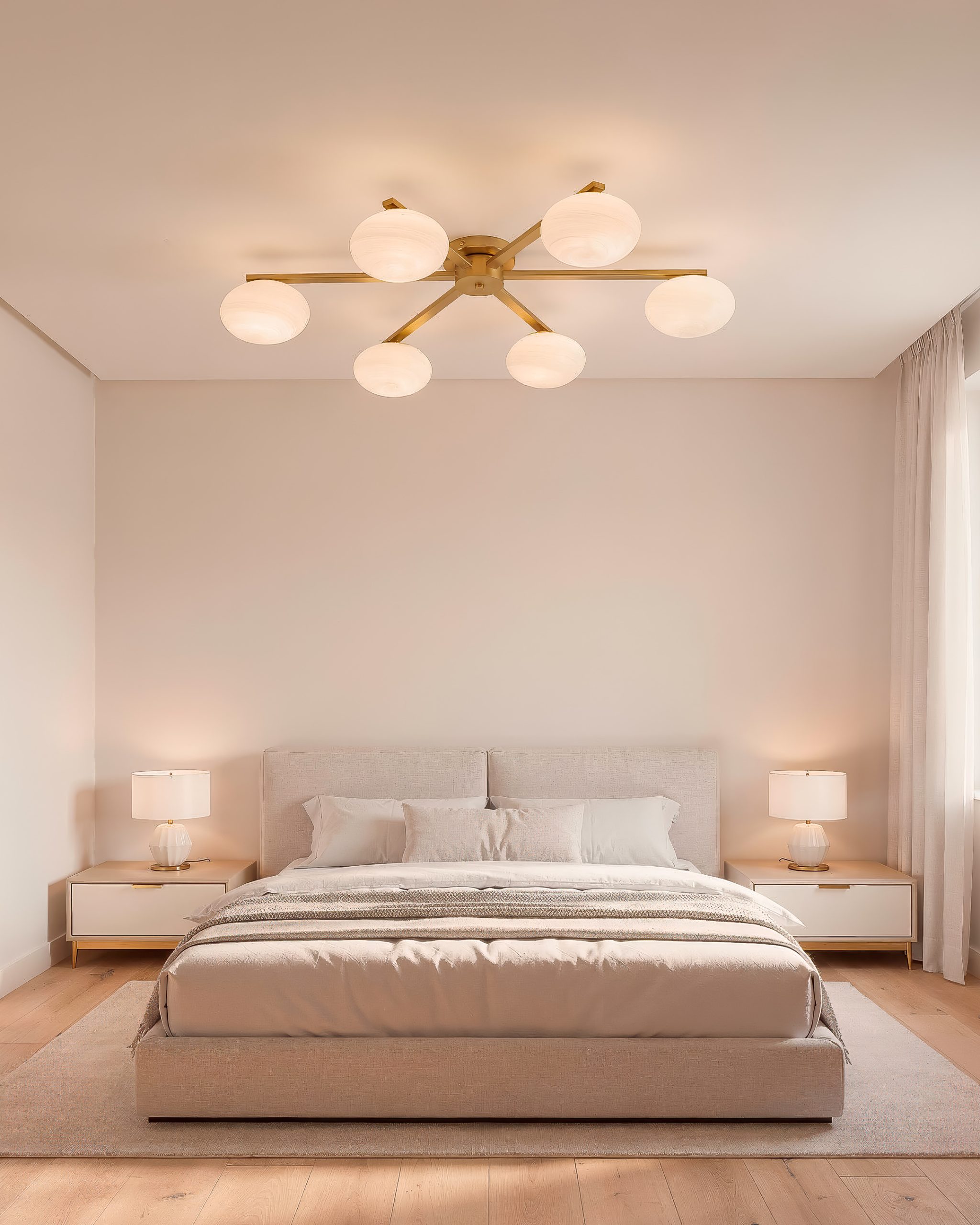 Mesingana konstrukcija daje toplinu i prefinjenost, dok simetričan raspored kugli obezbjeđuje ravnomjerno osvjetljenje prostora. Bertina 6 se prirodno uklapa u savremene dnevne boravke, trpezarije, hodnike ili spavaće sobe, gdje diskretno podiže enterijer bez vizuelne težine.