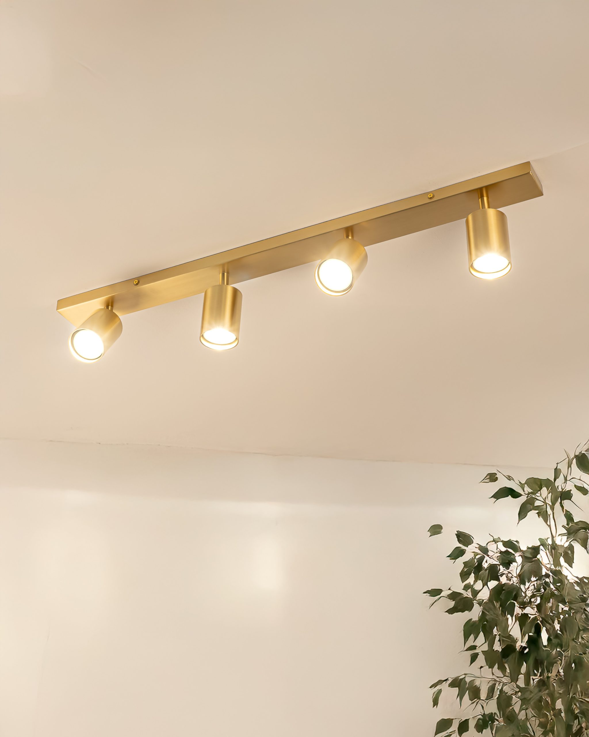 Četiri GU10 reflektora mogu se pojedinačno rotirati i usmjeravati, što omogućava kombinaciju ambijentalnog i akcentnog osvjetljenja u istom prostoru. Ova varijanta je posebno pogodna za dnevne boravke, kuhinje, galerijske prostore ili komercijalne enterijere gdje je potrebna kontrola svjetlosnih zona.