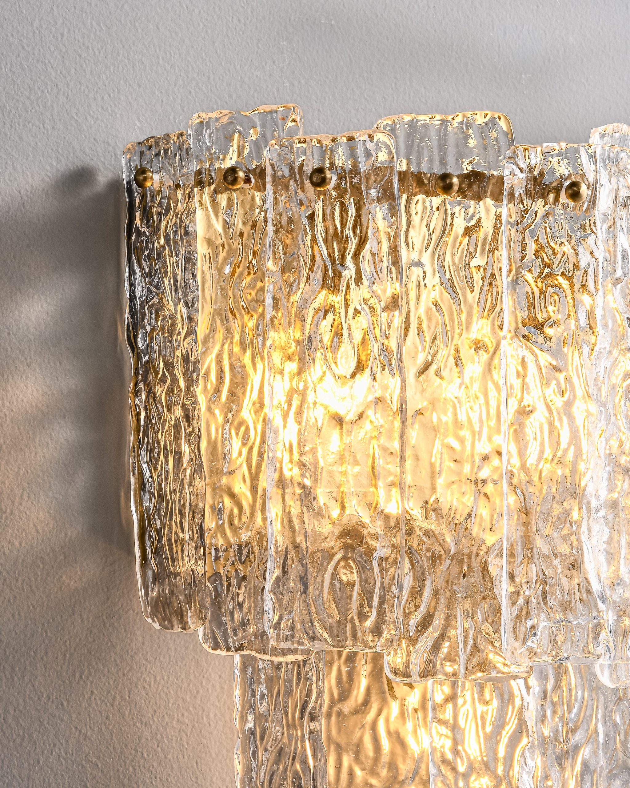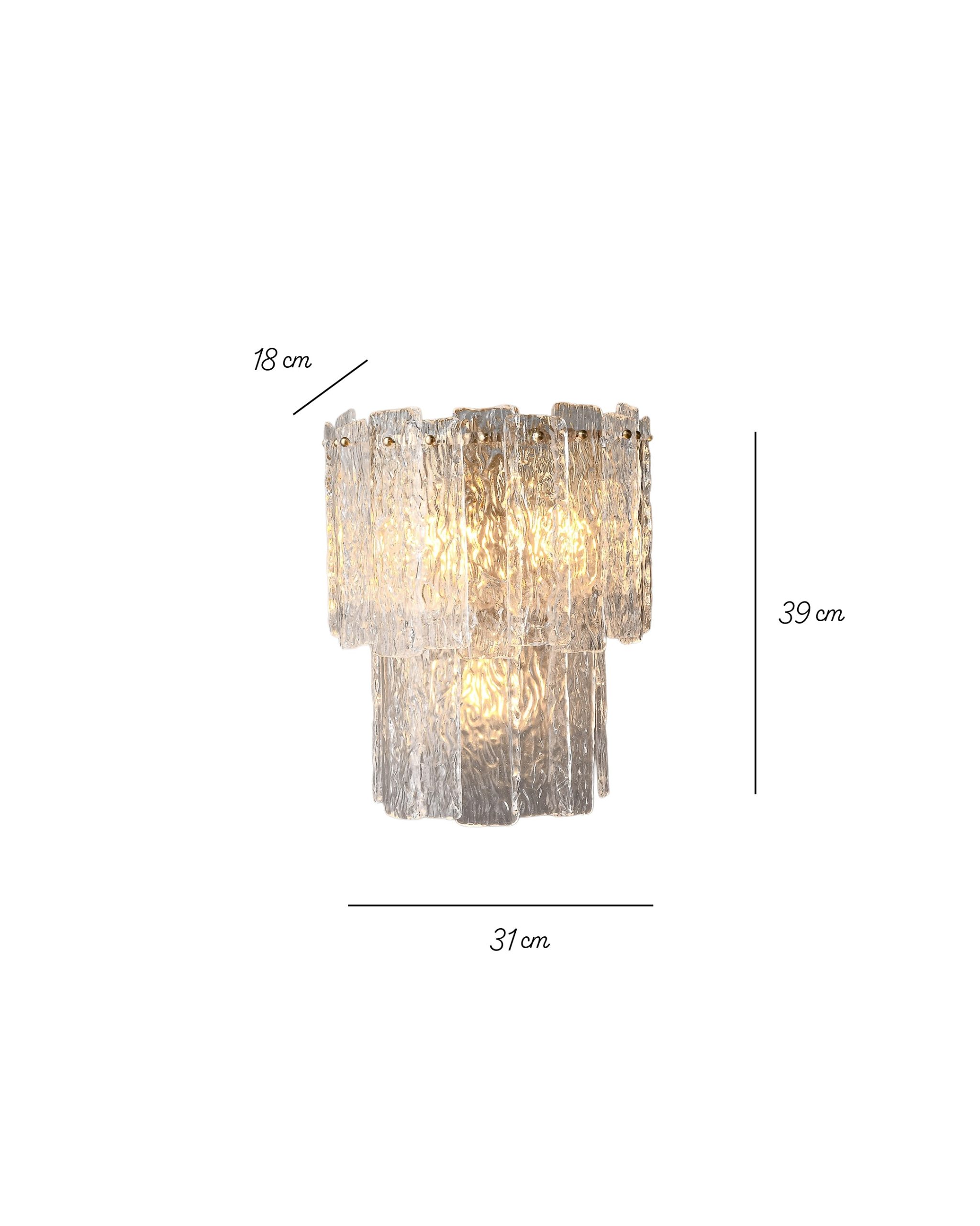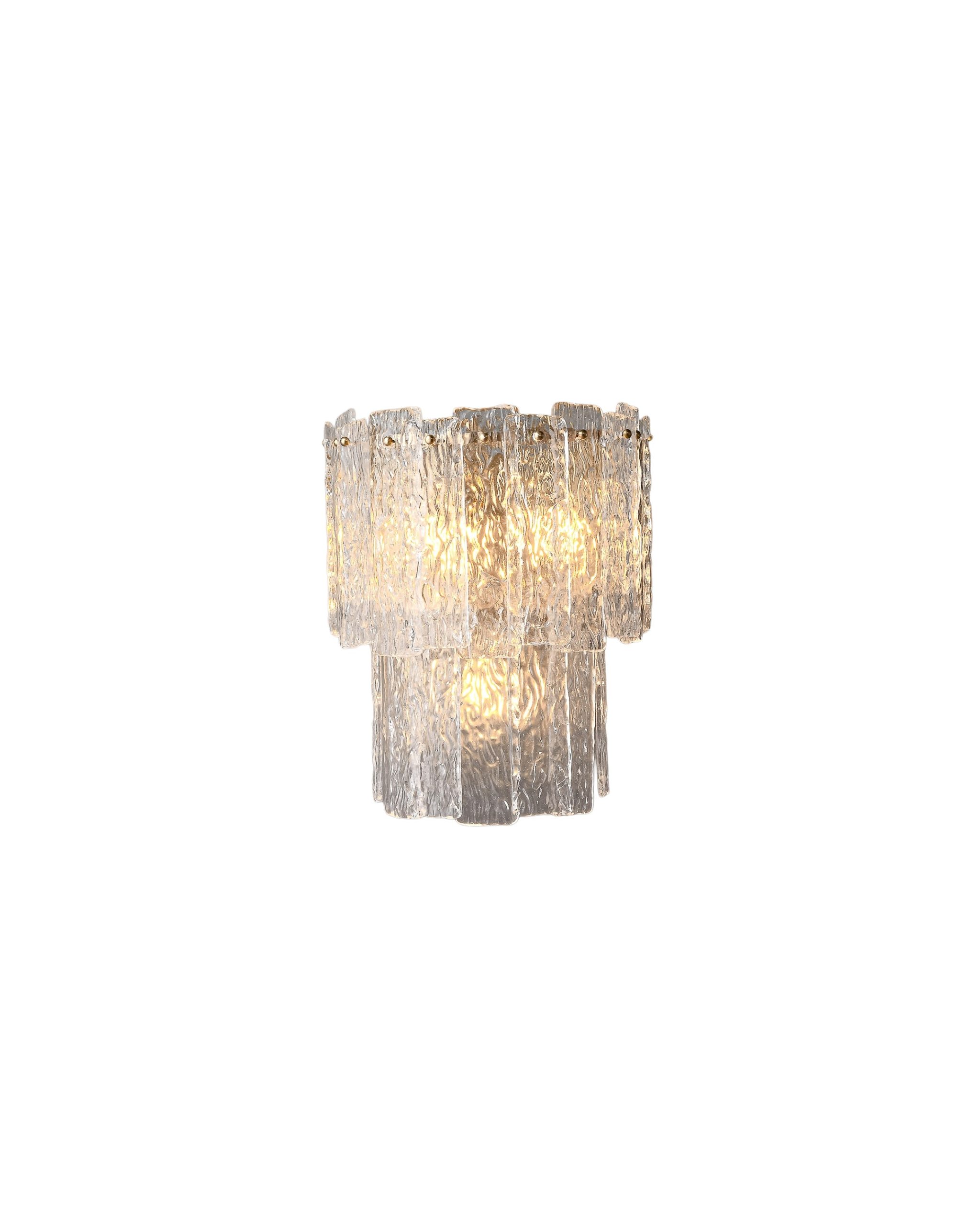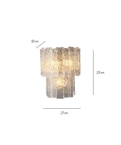Artsen zidna lampa izrađena je od ručno oblikovanog kristalnog stakla i mesingane konstrukcije, pružajući elegantno ambijentalno osvjetljenje sa bogatim refleksijama.